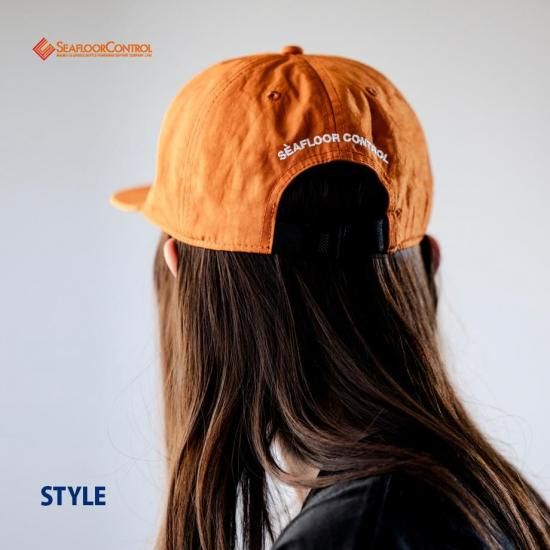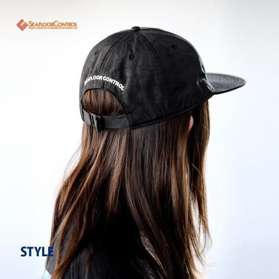 ナイロン生地にウォッシュ加工を施した6パネルフラットバイザーCAP。